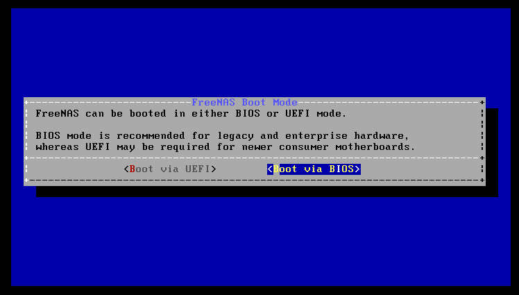 然后我选择了通过BIOS 模式:
