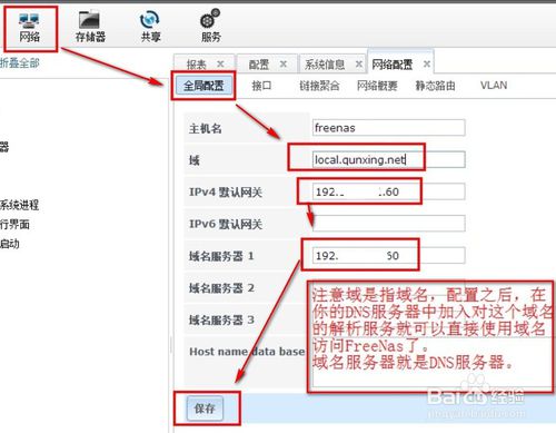 2.要用FreeNas发送邮件-->需要在FreeNas中配置DNS和网关-->需要配置动态DNS-->才能在公网访问你的服务器-->保存