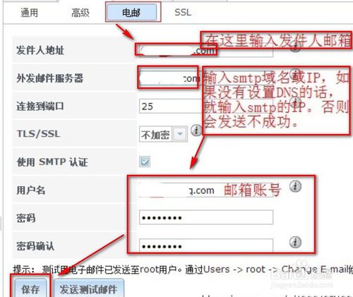 4.进入配置电邮--》设置即:输入发件人的邮箱地址-》发送的smtp服务器域名或IP的操作如下