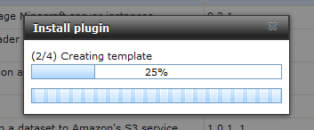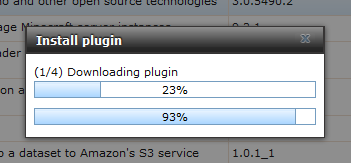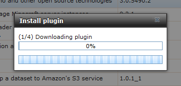点击“OK” 确定按钮,系统将自动开始从服务器端下载插件包并执行安装,如下图所示。由于 FreeNAS 官方服务器在国外,国内下载速度可能比较慢,需要耐心等待。注意:插件安装过程中请不要关闭安装界面,中断安装会导致错误。