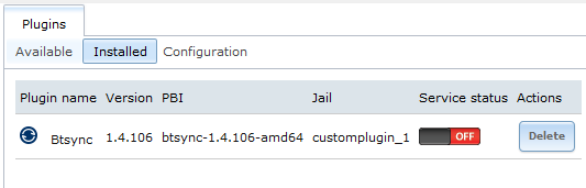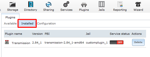 删除插件只要点击相应插件后面的“Delete”按钮即可。需要注意,FreeNAS的插件安装在Jail中,删除插件,同时也会删除插件所在的Jail。因此,在决定删除一个插件之前,先确认其所在的Jail中没有存储重要数据,否则,先备份Jail中的重要资料,再删除插件。