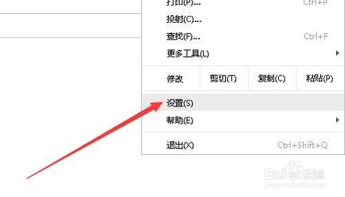 2、在打开的下拉菜单中,点击设置菜单项。