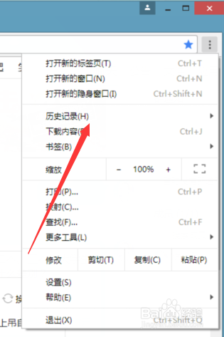 2、打开下拉选项框之后,点击选择历史记录,点击历史记录,即可进入选项框页面。