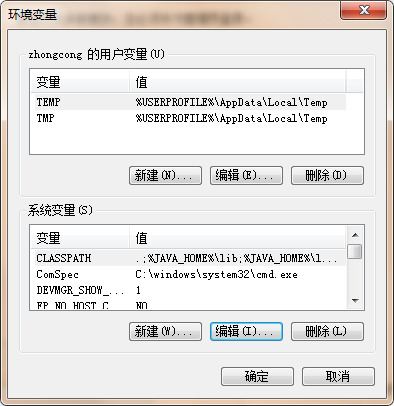 在系统变量中点击新建,新建一个变量名为JAVA_HOME的变量,变量值为jdk的安装目录,例如:C:\ProgramFiles\Java\jdk1.7.0_45。再新建一个名为CLASSPATH的变量,变量的值为:.;%JAVA_HOME%\lib;%JAVA_HOME%\lib\tools.jar(最前面的.;一定要加上),在系统变量中找到Path变量,点击编辑,在变量值最前面添加一个分号,然后在分号的前面添加%JAVA_HOME%\bin;%JAVA_HOME%\jre\bin。这样java的环境变脸已经配置好了,打开dos,输入java、javac、java–version等命令就能看见相关的信息。