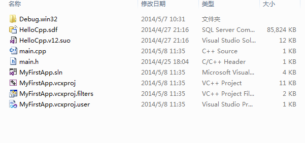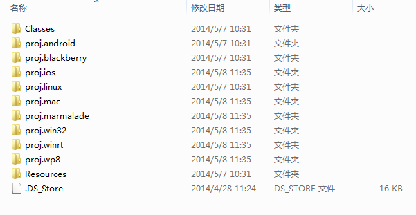 最后,工程创建好了以后,在CrossApp的projects目录下就能看见我刚才新建好的工程,进入新建的工程,可以直接运行proj.win32下的.sln,