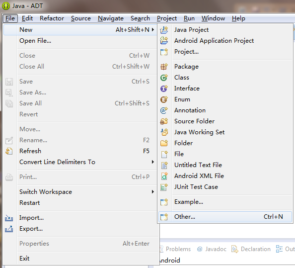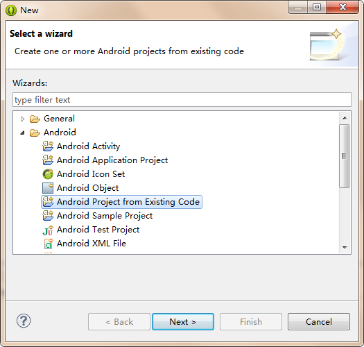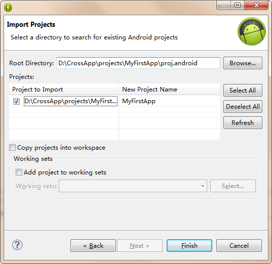 如果需要移植到android,先将工程导入eclipse,File->New->Other->Androidprojectfromexistingcode,点击browse找到我们刚创建的工程目录下的proj.android,完成。