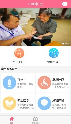 Hello护士app是一款专门为行动不便的老年用户所打造的医疗健康类软件,这款软件主要能够为用户提供医护到家等服务,用户只需要在线寻求帮助,护士将会以最快的速到赶到你身边,这样能够很好的避免疾病风险的困扰。