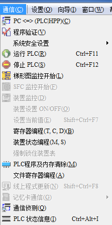 5、编译完成后,依次点击菜单中的“通信--PC<=>PLC”,确定后将程序下载到PLC中,就可以进行调试了。