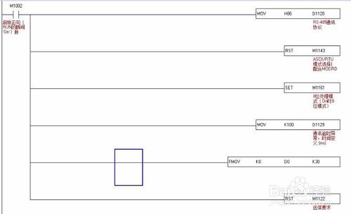 程序中使用了2个RS指令,一个用于接收数据,一个用于发送数据。