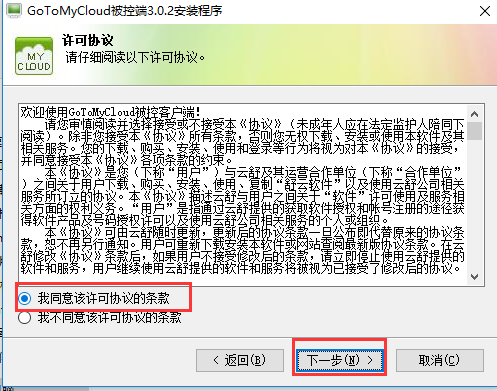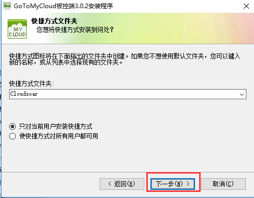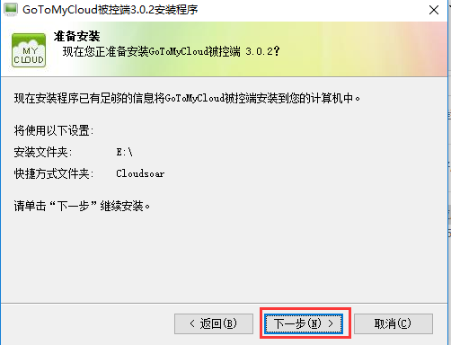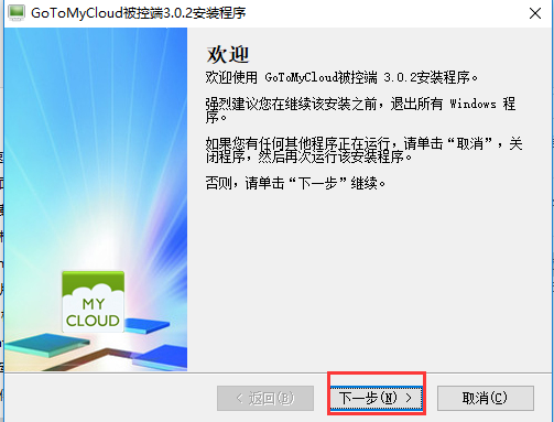 3、双击exe安装文件,进入Go To My Cloud远程控制软件安装向导界面,点击下一步