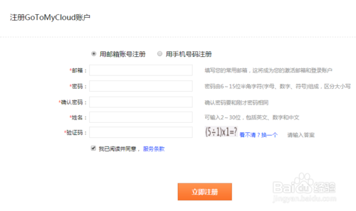 1、注册账号gotomycloud包含两个客户端:主控端和被控端。使用主控端可以连接到局域网或互联网中安装了自己被控端的电脑,远程被控电脑桌面,进行自由操作。首先我们在它的官网注册账号,按提示完成注册即可