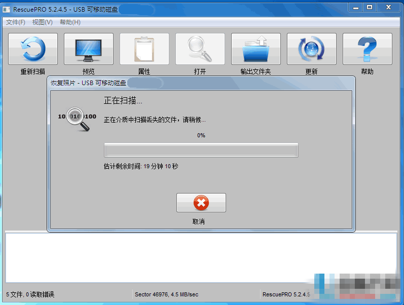 2、打开RescuePRO Deluxe软件便自动打开相关设备(比如你的内存卡或者相机存储器);