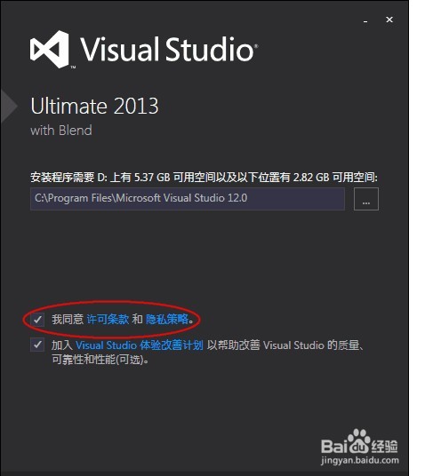在定制安装路径时,请注意为路径保留的空间应该足够。 否则,安装将失败,同意许可条款,并继续下一步。