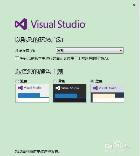 第一次打开visual studio 2013简体中文旗舰版(VS2013)时,需要做一些基本的配置,比如开发设置,颜色主题,根据需要设置,然后等待几分钟才能使用。
