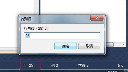 双击右下角状态栏的行号,会跳出一个行号跳转窗体。或者快捷键Ctrl+G调出窗体。当然,还可以从菜单栏点击“编辑->跳转..”使用这个功能。