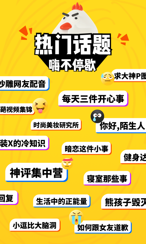 【热门话题】脑洞大开,发出你的声音,把你身边趣事分享给大家,制造话题,塑造热点;