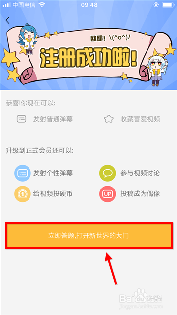 如果是刚注册的新账号,如下图所示点击“立即答题,打开新世界的大门”。