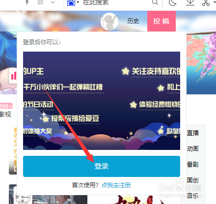 首先要在电脑网页上输入B站网址并登陆自己的账号