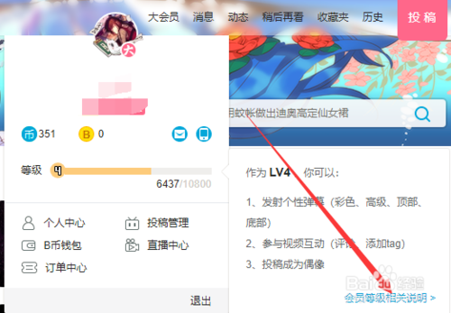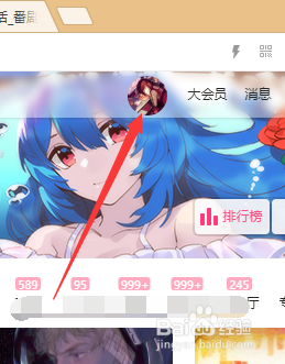 然后将鼠标光标移到你的B站头像处,注意,不用点击移到即可