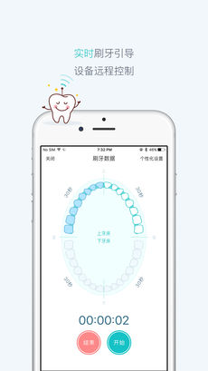 1、刷牙提示:可视化的刷牙界面,刷牙分区计时计时提醒,并可在APP上对牙刷进行控制,可帮助您养成科学的洁齿习惯,促进口腔健康,2、刷牙得分:每次使用APP刷牙结束后,通过智能化的数据分析,您将获得本次刷牙的得分情况,刷牙效果一目了然。