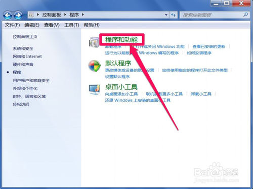 进入程序窗口后,在右侧窗口,选择并打开“程序和功能”这一项。