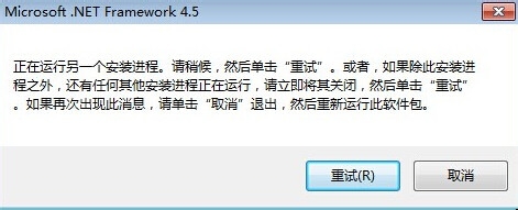 有时会提示错误,安装软件并未退出,退出其它软件安装,然后继续。
