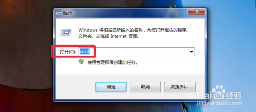 按下键盘的WIN+R打开电脑的运行对话框,然后输入命令CMD,打开命令提示符。