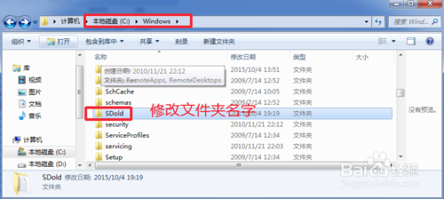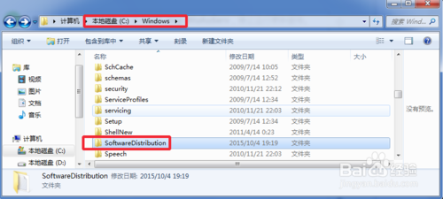 然后我们在计算机窗口中地址栏中输入C:\Windows,然后找到这里的SoftwareDistribution,然后我们将SoftwareDistribution修改名字为SDold。