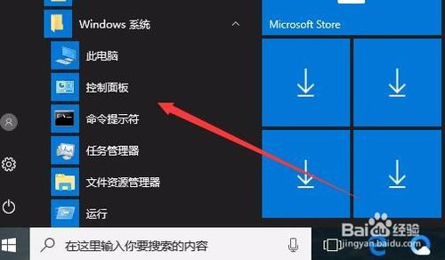 在Windows10桌面,依次点击“开始/Windows系统/控制面板”菜单项。