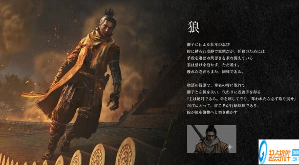 狼本作的主角是一名年长的忍者“狼”,他必须保护一大名门的后人御子。游戏开始时“狼”被敌人杀死,御子的保护任务也失败了。之后“狼”被复活并赠与了左臂义肢,而他与敌人的战斗也将继续展开。