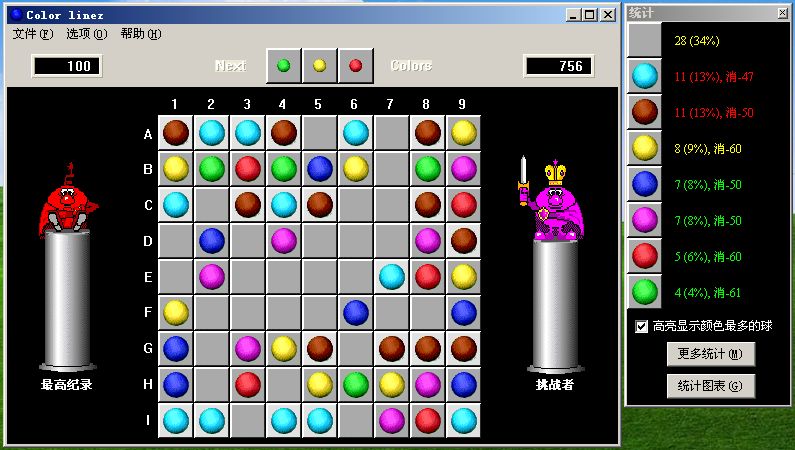 winlinez是一款类似五子棋的游戏,winlinez免费版的玩法非常简单,玩家需要移动棋盘上同色的棋子使之水平、垂直以及45度斜线凑成5子,便能够获得相应的分数,等到棋子布满整个棋盘则游戏结束。
