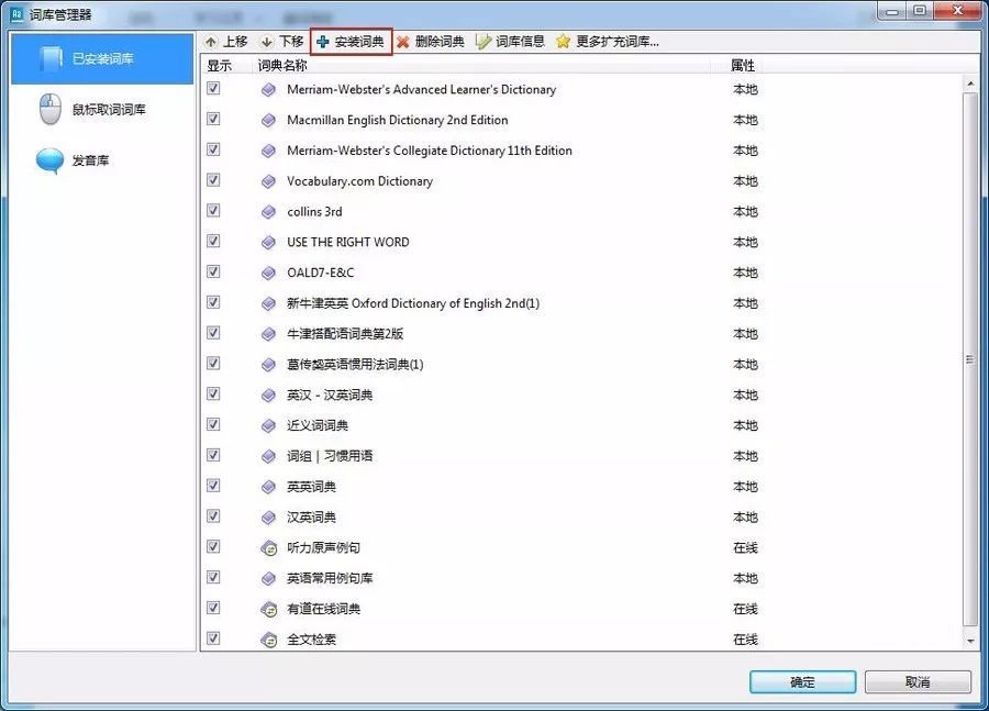 安装完全部词库后,可以在词库管理器页面,单击选中任一词库,然后点击上方工具栏内的”上移“”下移“按钮,调整此词库在查询单词释义时出现的先后位置。