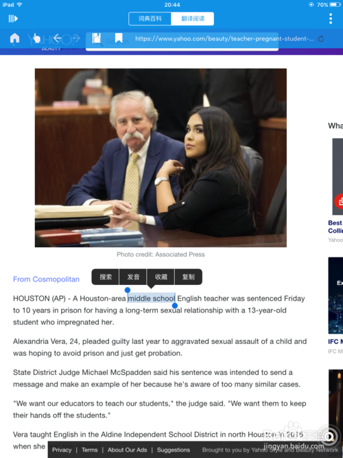 看网页还可以在欧路词典的阅读模块里进行。有一些境外网站是可以访问的,而且网速不是慢得让人抓狂。有的网页上的文字不能选定或复制,这是网页设计者预先设置的。