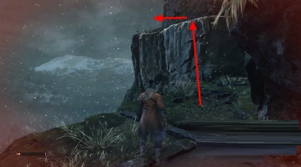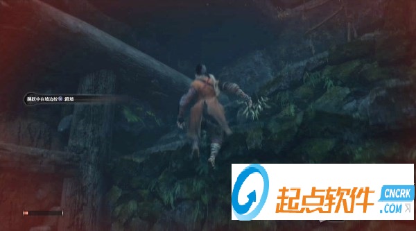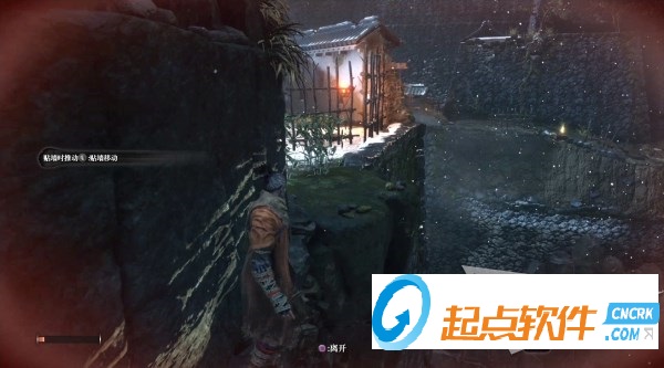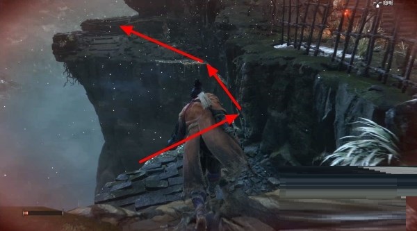 离开破旧寺院,悬崖边,看到绿色的圆圈,可以使用忍义手的钩绳过去。以后遇到这种标记,是绿色可以直接使用,灰色需要再靠近一点才能使用,绿色有一个红杠则需要调整位置使用。