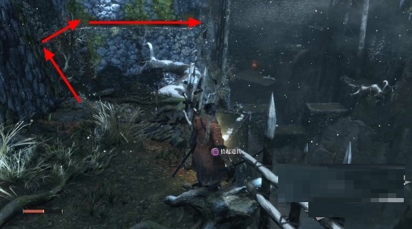 击杀山内重则后,向前走,这个门目前是进不去的,需要从右侧走。接下来继续沿着红色箭头走,看到道具记得拾取。