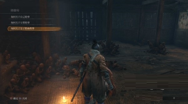 在院子中央鬼佛面前与鬼佛对坐,这里的鬼佛就是魂系列的“篝火”,相信魂系列老玩家非常熟悉。具体作用:可以在鬼佛处休息恢复血量,补充伤药葫芦的次数以及超过所持上限而被传送至鬼佛的道具;但除了精英怪和BOSS之外的所有敌人也会复活。