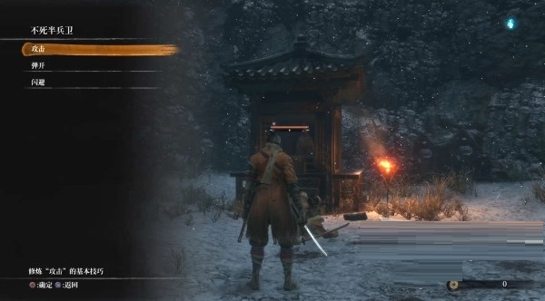 这之后,不要离开寺院,而是向右走,会遇到不死半兵卫,与其对话直接开战,击杀他还是比较简单的,他会教我们基础的战斗技巧,以及战斗机制,也可以与他进行联系,总之在能够熟练掌握他教的所有技巧之后再上路才不会太受苦。