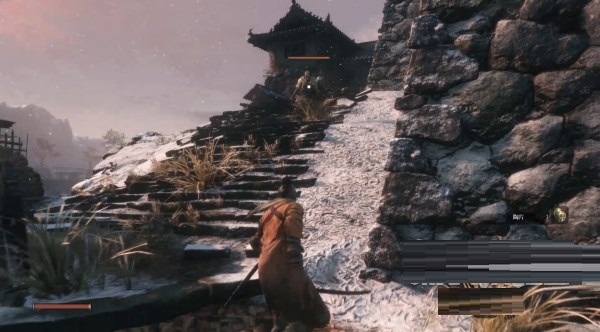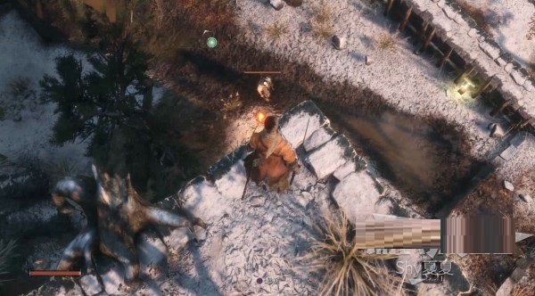 3.本作有「架势槽」这个显示自身状态的系统,可以通过击中攻击或防御攻击,以格挡招架来削减架势槽带来的危险。如果这个系统累积到最大的话,敌人的架势槽就会完全崩坏,此时就能使用一击必杀的忍杀,但 BOSS 和精英怪有多个架势槽点数,无法一击必杀。