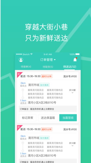 随时随地,可通过菜城配送app查找附近的生鲜食材信息。