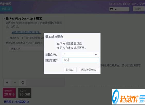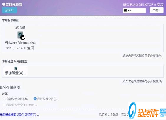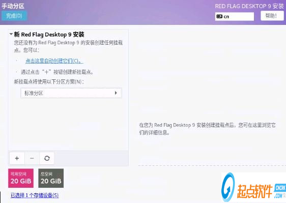 注:自动分区是一种非常方便的分区方式,不需要用户干预就可以将所需的硬盘分区自动分配好;而且还可以在自动创建分区的基础上进行修改。手动分区操作起来很直观,允许您通过交互的方式自由地添加、编辑或删除分区。选择“手动”,单击“完成”,进入如下图所示的界面: