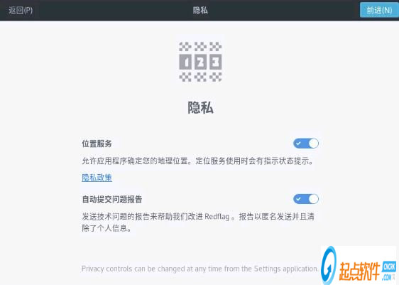 可以根据个人需求是否选用隐私设置,如不选用把上图中的按钮点掉,然后点击“前进”方可。