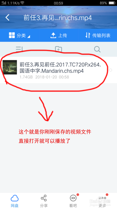 到这里的时候,我们返回到 百度云破解版2019安卓app 首页的“网盘”,然后打开你刚刚保存的视频(电影)文件就可以无广告在线播放啦~