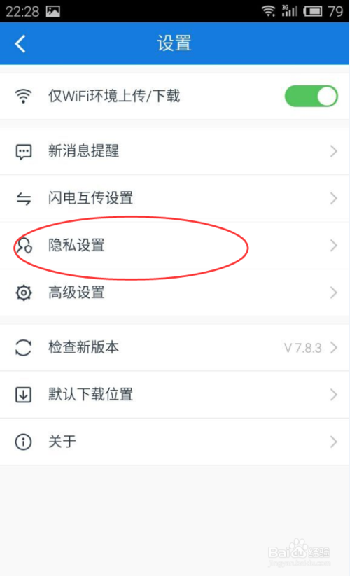 接着,点击“设置”菜单下的”隐私设置“,如下图所示