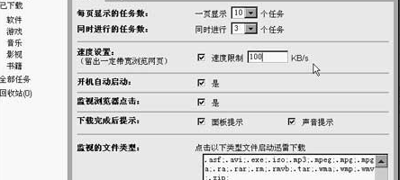 如果感觉用了Web版迅雷而影响到了其他的网络程序,可以在打开http://my.xunlei.com,然后单击右上角的“设置”按钮,在打开的窗口中单击“常规”选项卡,在这里可以设置同时进行的下载数目、速度限制等(如图3)。
