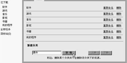 在Web版迅雷中,已经设定了多个下载类别,比如软件、音乐,影视等。不过,Web版迅雷也支持自定义文件夹,以方便你对下载回来的文件进行有效的管理:打开http://my.xunlei.com,在打开的页面中单击右上角的“设置”按钮,当页面完全跳转后单击“分类”选项卡,接着在“新建分类”中输入一个名称,单击“新增”按钮(如图5)即可新建下载类别后的下载分类,并可以将下载内容放到此文件夹下。