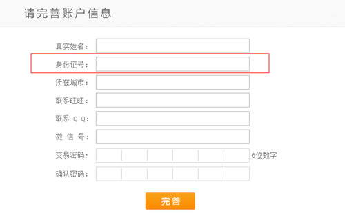 2、在完善资料的界面就可以看到需要身份证等真实信息。