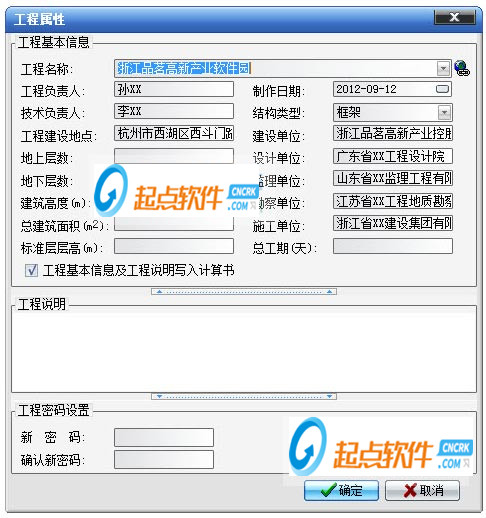 在以上脚手架工程属性窗口中用户可输入工程基本信息以及对工程进行加密。