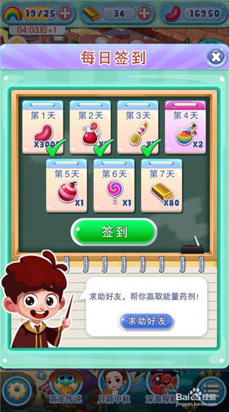 1、首先,我们每天第一次登录宾果消消消的时候,直接就会提示我们签到,连续签到可以得到各种奖励,当然包括能量瓶。