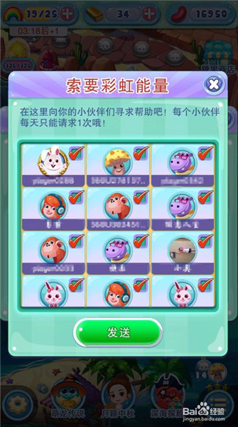 3、点了求助之后,就会出来我们好有的列表,而且都默认打对勾,我们直接点下面的发送。
