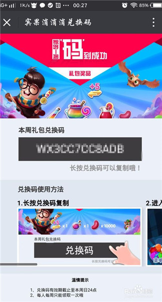 8、点了每周礼包之后,就会出来一个兑换码。